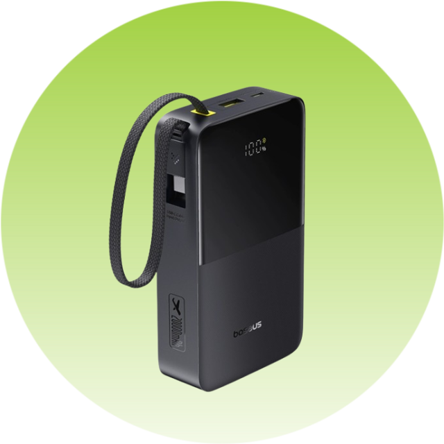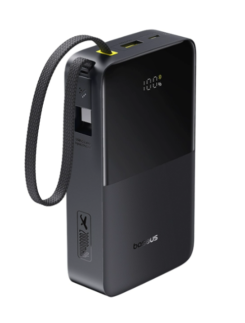 Технічні характеристики: Зовнішній зарядний пристрій Baseus Bipow 2 Pro 20000 mAh 22.5W з цифровим дисплеєм, вбудованим кабелем USB-C, чорний