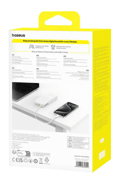 Технічні характеристики портативного зарядного пристрою Baseus Bipow 2 Digital Display Power Bank 20000mAh 20W білий